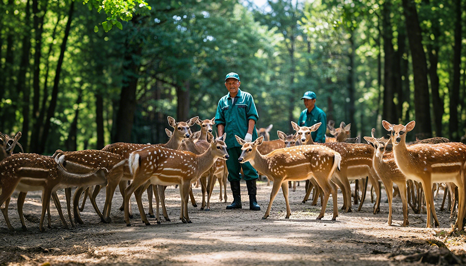 其中“京西鹿谷梅花鹿生態(tài)養殖繁育基地”,群山環(huán)繞、空氣清新、水源優(yōu)質且充足,為梅花鹿的生長營造了良好的自然條件。基地內植被豐富,有大量梅花鹿喜愛的嫩草和樹葉,充足的食物資源保障了梅花鹿飲食的多樣性。同時開闊的空間和適宜的氣候條件,為梅花鹿的生存提供的得天獨厚的優(yōu)勢,使其能夠自由地繁衍生息。